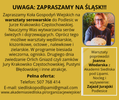 18 września – wyjazdowe warsztaty serowarskie w KGW Małachowo. Relacja tutaj.